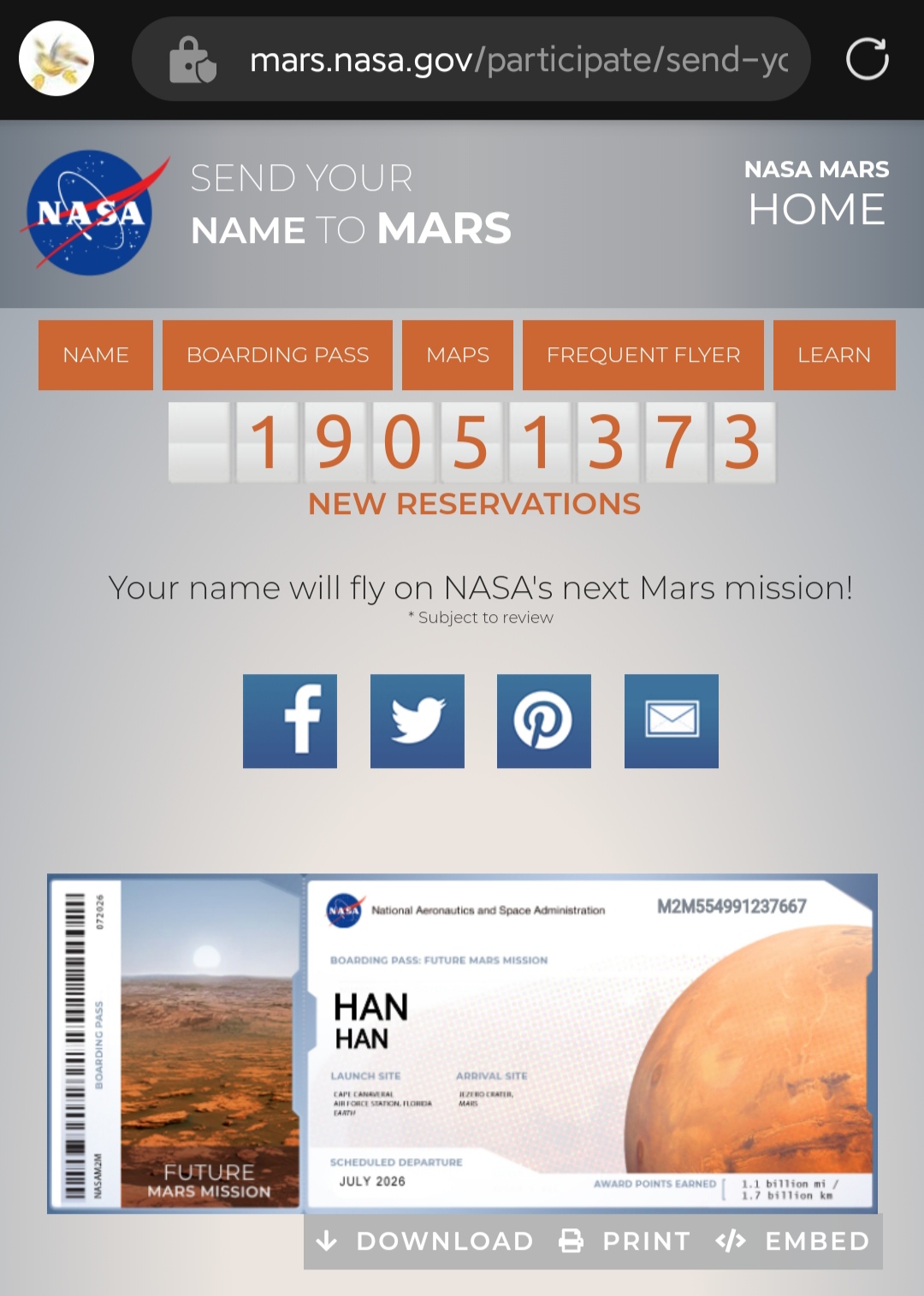 本来想直接上NASA给的嵌入代码,但后来发现有跟踪器,所以换了图片,你也可以上https://mars.nasa.gov/layout/embed/send-your-name/future/certificate/?cn=554991237667自己看