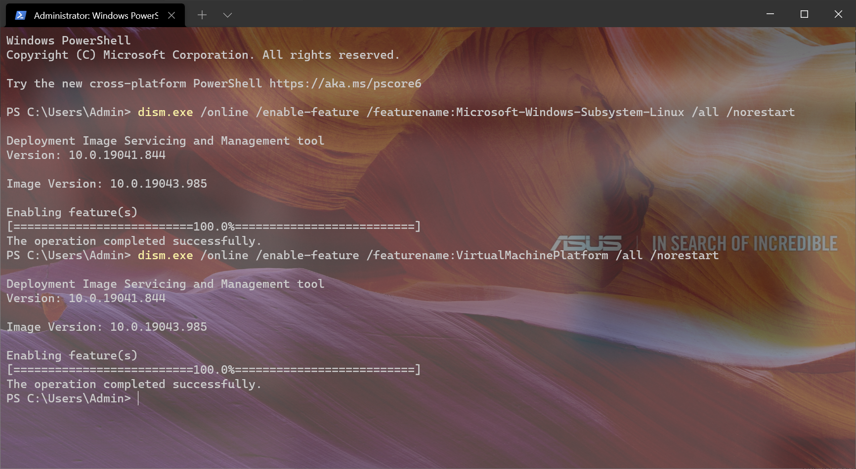 要切换到第二代WSL,我们需要在权限提升的Powershell(以管理员身份运行)键入以下指令: